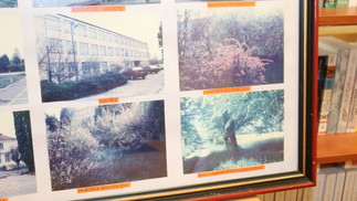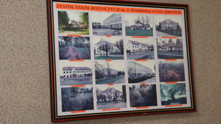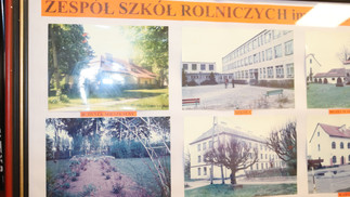 W przepastnych czeluściach bibliotecznej jaskini odnaleziono przeszkloną tablicę zawierającą 16 – można powiedzieć, że już archiwalnych – zdjęć. Przedstawiają one budynki: pierwszą, jeszcze przedwojenną siedzibę szkoły (później internat męski), dworek, obecną szkołę i internat (dawniej żeński), warsztaty szkolne (obecnie jest to siedziba ARiMR) z przyległymi izbami pamięci (zwyczajowo określanymi przez nas jako muzeum). Na zdjęciach widnieją także ogródek botaniczny i pola gospodarstwa szkolnego. Wszystko to dziś wygląda inaczej.