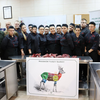 Uczniowie klasy 4 i 5 technikum kształcącego w zawodzie technik żywienia i usług gastronomicznych 14 listopada 2024r. zapoznali się z zasadami rozbioru tuszy sarny. Zajęcia prowadziła Katarzyna Dudek i Kamil Wawrzyński z Polskiego Związku Łowieckiego Zarząd Okręgowy w Ciechanowie. Dla większości uczniów był to debiut masarski z dziczyzną w roli głównej. Zapoznali się z arkanami dzielenia tuszy na elementy gastronomiczne oraz ich zastosowaniem w gastronomii.