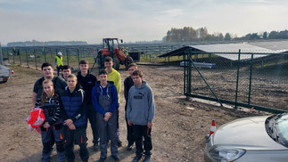 Po farmie fotowoltaicznej oprowadzał nas pan Mateusz Równy. Farma fotowoltaiczna będzie jedną z większych w naszym regionie, a energia z niej wyprodukowana będzie w części pokrywała zapotrzebowanie na moc zakładu. Powierzchnia farmy wynosi 2,2 ha, a moduły PV będą generowały moc 3,2 MW. Roczny uzysk energii będzie wynosił około 3 GWh.